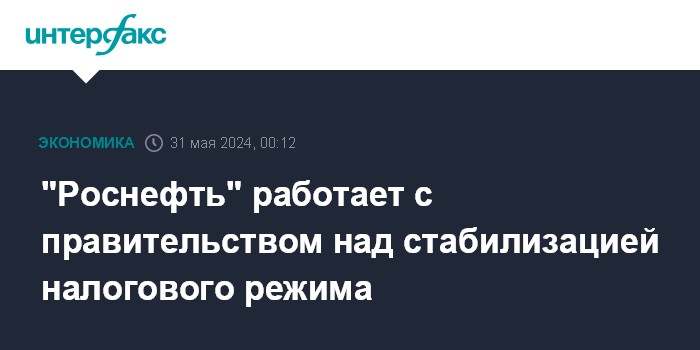 Москва. 31 мая. INTERFAX.RU - "Роснефть" ведет работу с правительством РФ по вопросу стабилизации налогового режима с целью сохранения доходности акционеров, включая государство, приводит НК слова председателя правления и главного исполнительного директора Игоря Сечина.