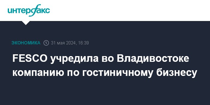 Москва. 31 мая. INTERFAX.RU - Транспортная группа FESCO (головная компания - ПАО "Дальневосточное морское пароходство", ДВМП) учредила новую дочернюю компанию ООО "ФЕСКО Хотэл", сообщается в данных ЕГРЮЛ.
