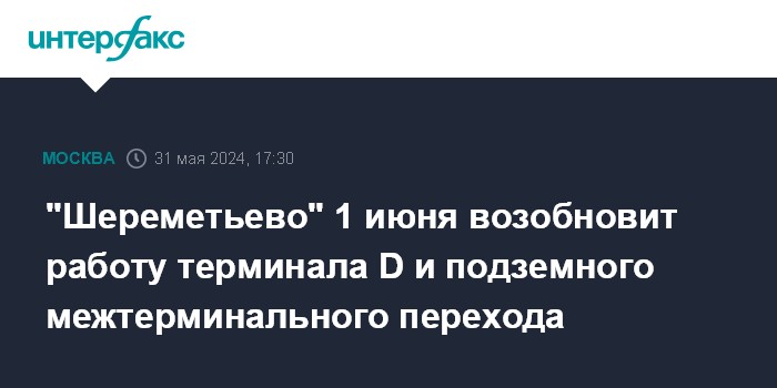 "Шереметьево" 1 июня возобновит работу терминала D и подземного межтерминального перехода