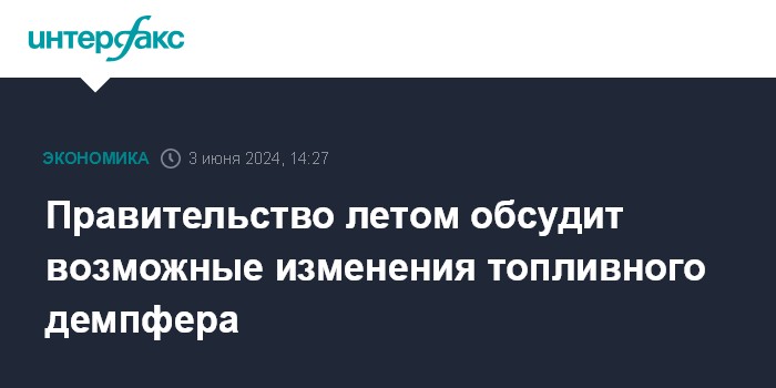 Москва. 3 июня. INTERFAX.RU - Правительство получило обращение о возможных изменениях топливного демпфера, но обсуждать это будет только летом, сообщил "Интерфаксу" замминистра финансов Алексей Сазанов.