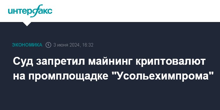 Суд запретил майнинг криптовалют на промплощадке "Усольехимпрома"