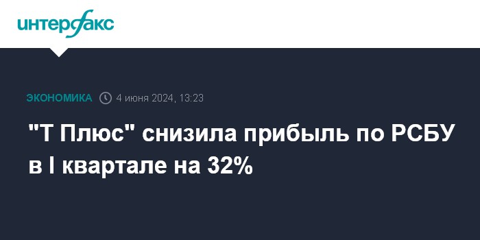 "Т Плюс" снизила прибыль по РСБУ в I квартале на 32%