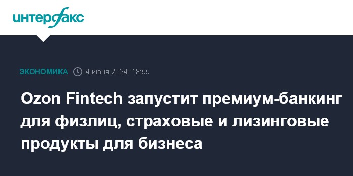 Ozon Fintech запустит премиум-банкинг для физлиц, страховые и лизинговые продукты для бизнеса