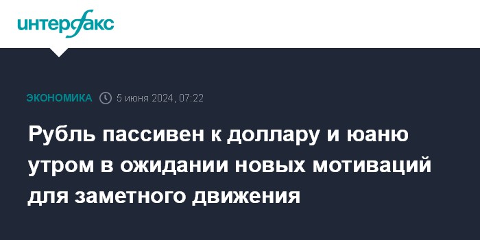 Рубль пассивен к доллару и юаню утром в ожидании новых мотиваций для заметного движения