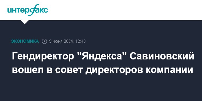 Гендиректор "Яндекса" Савиновский вошел в совет директоров компании
