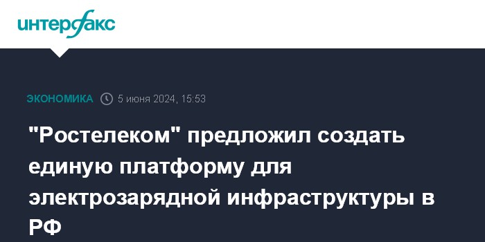 Москва. 5 июня. INTERFAX.RU - ПАО "Ростелеком" предложило правительству проект создания платформы электрозарядной инфраструктуры (ЭЗИ), сама компания при этом готова выступить единым оператором ЭЗИ в России, сообщил "Интерфаксу" источник.