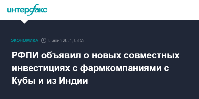 РФПИ объявил о новых совместных инвестициях с фармкомпаниями с Кубы и из Индии