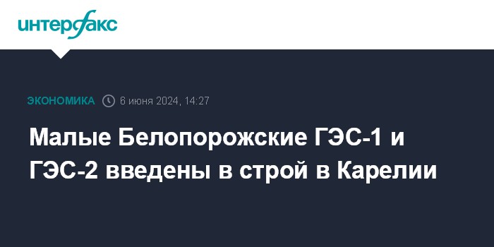 Малые Белопорожские ГЭС-1 и ГЭС-2 введены в строй в Карелии