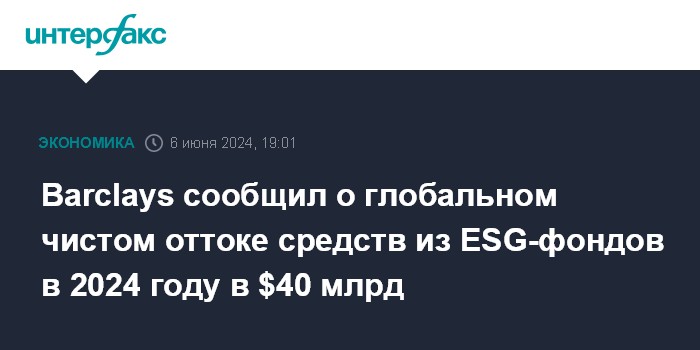 Barclays сообщил о глобальном чистом оттоке средств из ESG-фондов в 2024 году в $40 млрд