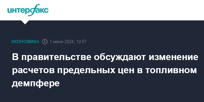 Москва. 7 июня. INTERFAX.RU - В правительстве обсуждается изменение расчетов предельных цен в топливном демпфере, сообщил журналистам в кулуарах ПМЭФ вице-премьер Александр Новак.