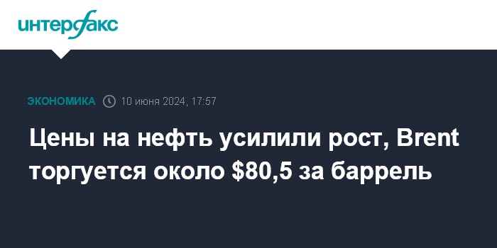 Москва. 10 июня. INTERFAX.RU - Цены на нефть усилили рост на торгах в понедельник.