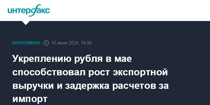 Укреплению рубля в мае способствовал рост экспортной выручки и задержка расчетов за импорт