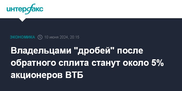 Владельцами "дробей" после обратного сплита станут около 5% акционеров ВТБ