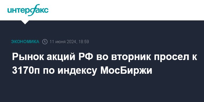 Рынок акций РФ во вторник просел к 3170п по индексу МосБиржи