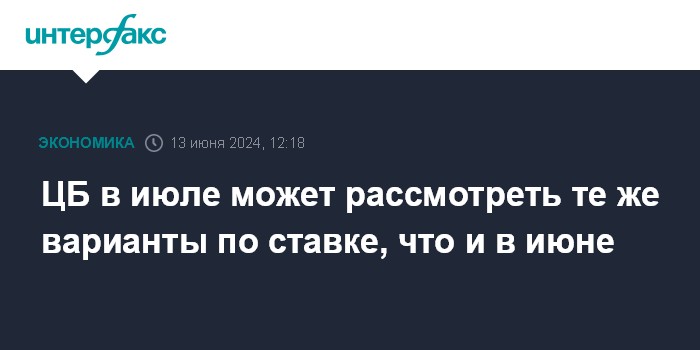 ЦБ в июле может рассмотреть те же варианты по ставке, что и в июне
