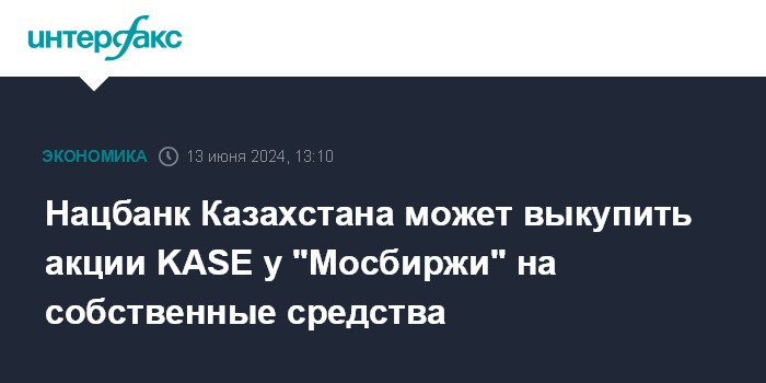 Москва. 13 июня. INTERFAX.RU - Если будет принято решение выкупить у "Московской биржи" акции Казахстанской фондовой биржи (KASE), Нацбанк Казахстана сделает это за счет собственных средств, заявил журналистам глава регулятора Тимур Сулейменов.