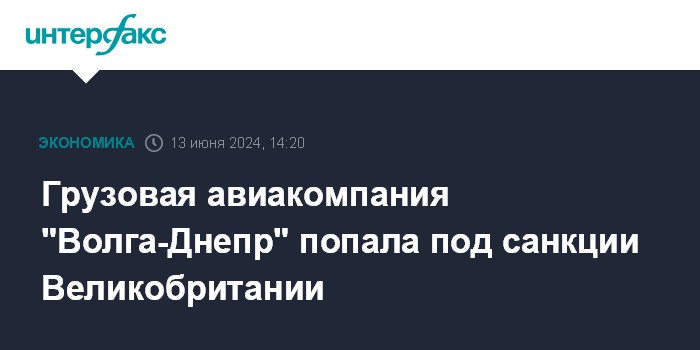 Москва. 13 июня. INTERFAX.RU - Одна из крупнейших российских грузовых авиакомпаний "Волга-Днепр" включена в санкционный список Великобритании.