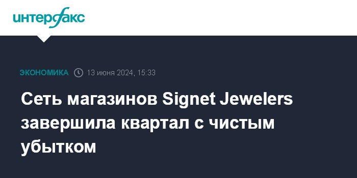 Москва. 13 июня. INTERFAX.RU - Signet Jewelers, владеющая одной из крупнейших сетей ювелирных магазинов в США, Канаде и Великобритании, завершила первый квартал 2025 финансового года с чистым убытком, при этом выручка оказалась ниже прогноза экспертов.