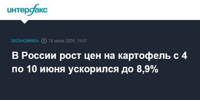 В России рост цен на картофель с 4 по 10 июня ускорился до 8,9%
