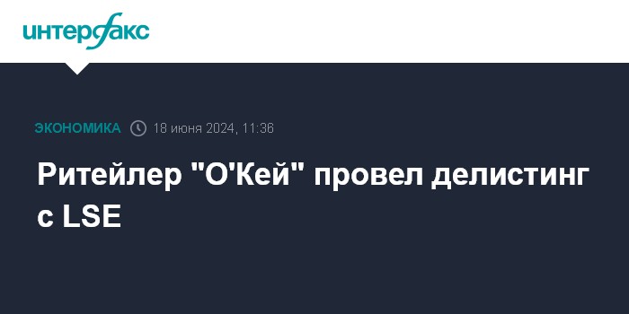 Москва. 18 июня. INTERFAX.RU - Ритейлер "О`Кей" (O`Key Group) 18 июня провел делистинг своих GDR с Лондонской фондовой биржи, сообщила компания.