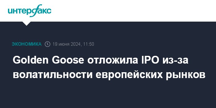 Москва. 19 июня. INTERFAX.RU - Итальянский бренд спортивной обуви класса "люкс" Golden Goose принял решение отложить проведение IPO из-за волатильности европейских фондовых рынков.