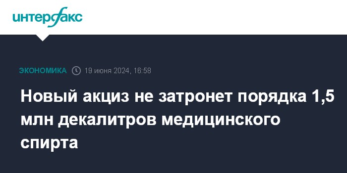 Новый акциз не затронет порядка 1,5 млн декалитров медицинского спирта