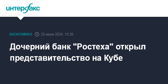 Дочерний банк "Ростеха" открыл представительство на Кубе