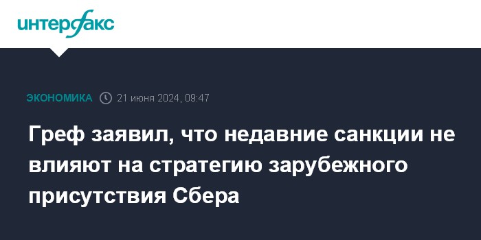 Греф заявил, что недавние санкции не влияют на стратегию зарубежного присутствия Сбера