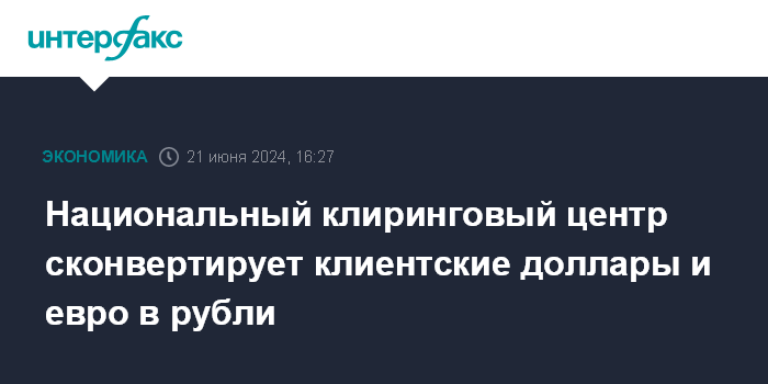 Национальный клиринговый центр сконвертирует клиентские доллары и евро в рубли