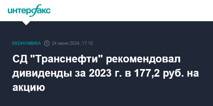 СД "Транснефти" рекомендовал дивиденды за 2023 г. в 177,2 руб. на акцию