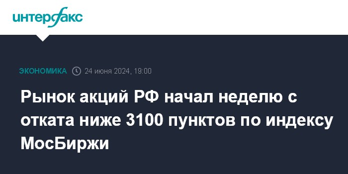 Рынок акций РФ начал неделю с отката ниже 3100 пунктов по индексу МосБиржи