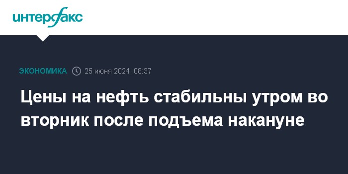 Москва. 25 июня. INTERFAX.RU - Цены на нефть эталонных марок стабильны утром во вторник после подъема накануне.