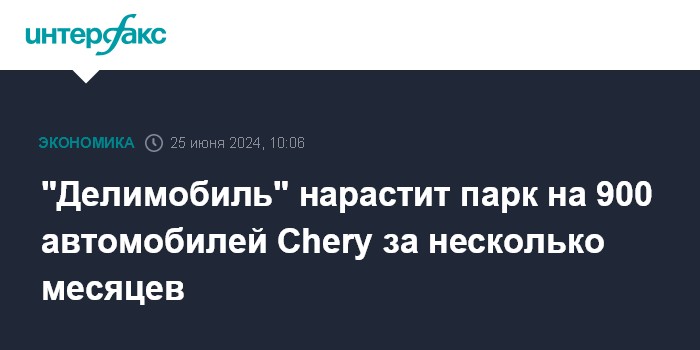 Москва. 25 июня. INTERFAX.RU - ПАО "Каршеринг Руссия", предоставляющее услуги под брендом "Делимобиль", расширяет партнерство с дистрибутором китайской Chery, за счет чего в ближайшие несколько месяцев парк каршерингового сервиса увеличится на 900 автомобилей.