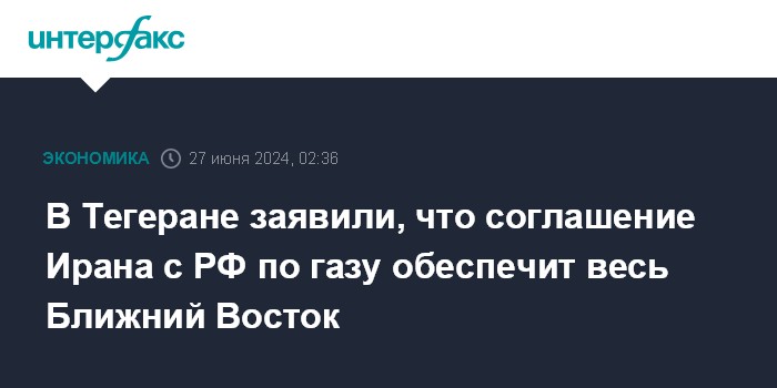 В Тегеране заявили, что соглашение Ирана с РФ по газу обеспечит весь Ближний Восток