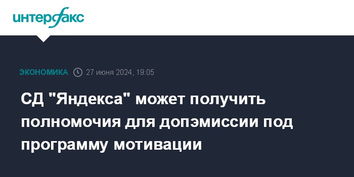 СД "Яндекса" может получить полномочия для допэмиссии под программу мотивации