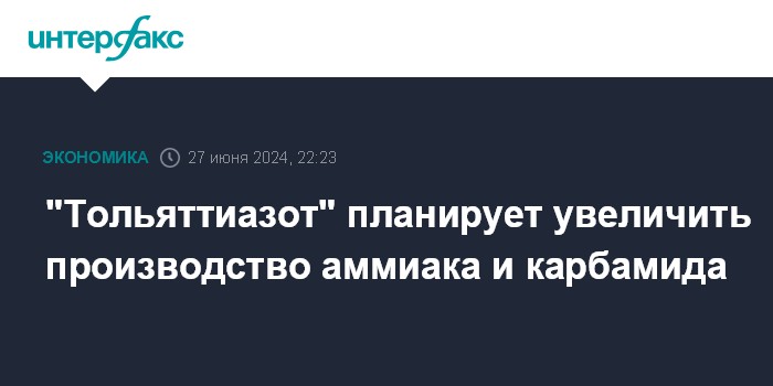 "Тольяттиазот" планирует увеличить производство аммиака и карбамида