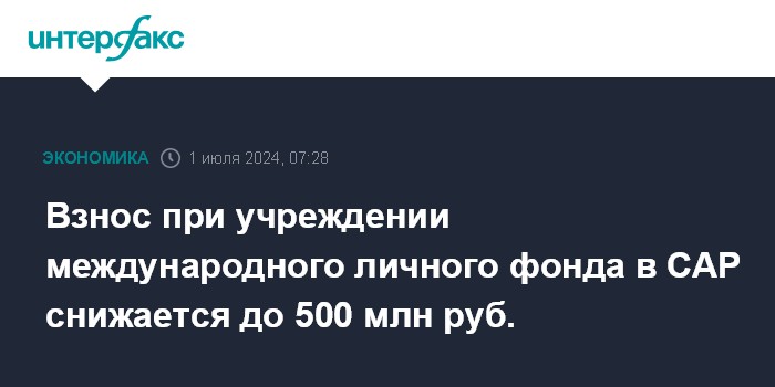 Взнос при учреждении международного личного фонда в САР снижается до 500 млн руб.