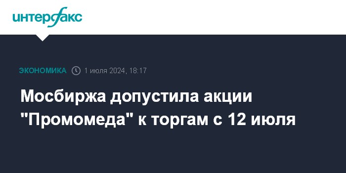 Мосбиржа допустила акции "Промомеда" к торгам с 12 июля