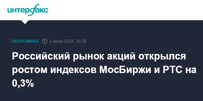 Российский рынок акций открылся ростом индексов МосБиржи и РТС на 0,3%