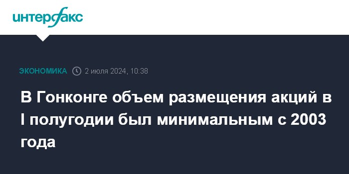 В Гонконге объем размещения акций в I полугодии был минимальным с 2003 года