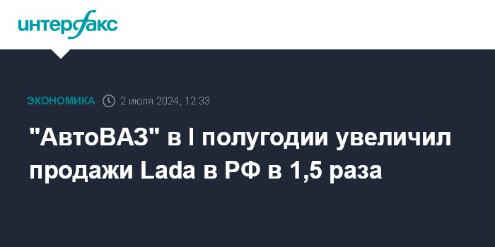 Москва. 2 июля. INTERFAX.RU - Продажи автомобилей Lada в РФ в I полугодии 2024 года выросли на 51,5%, до 217 631 штуки, сообщила пресс-служба "АвтоВАЗа".