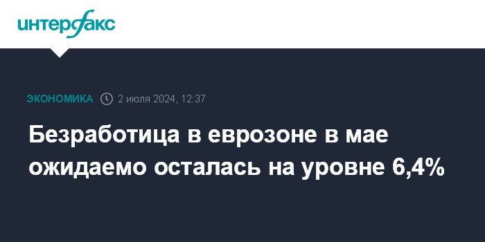 Безработица в еврозоне в мае ожидаемо осталась на уровне 6,4%
