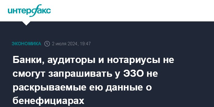Банки, аудиторы и нотариусы не смогут запрашивать у ЭЗО не раскрываемые ею данные о бенефициарах