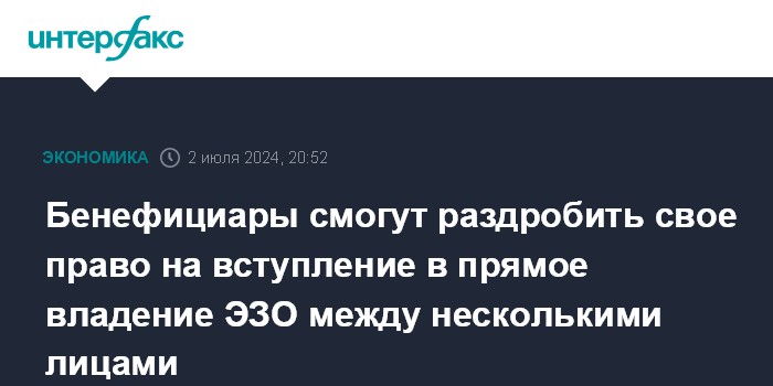 Бенефициары смогут раздробить свое право на вступление в прямое владение ЭЗО между несколькими лицами