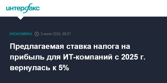 Предлагаемая ставка налога на прибыль для ИТ-компаний с 2025 г. вернулась к 5%