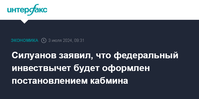 Москва. 3 июля. INTERFAX.RU - Федеральный инвестиционный вычет, введение которого является частью пакета мер по изменению налоговой системы с 2025 года, будет закреплен в акте правительства.