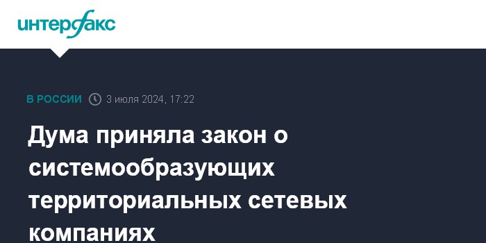 Дума приняла закон о системообразующих территориальных сетевых компаниях