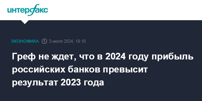 Москва. 3 июля. INTERFAX.RU - Российский банковский сектор в 2024 году вряд ли покажет результат лучше, чем в 2023 году, считает президент - председатель правления Сбербанка Герман Греф. Он сказал об этом журналистам в кулуарах финансового конгресса Банка России.