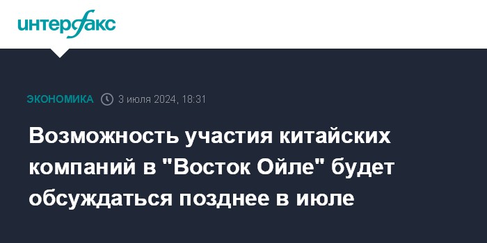 Возможность участия китайских компаний в "Восток Ойле" будет обсуждаться позднее в июле
