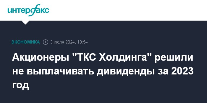 Акционеры "ТКС Холдинга" решили не выплачивать дивиденды за 2023 год